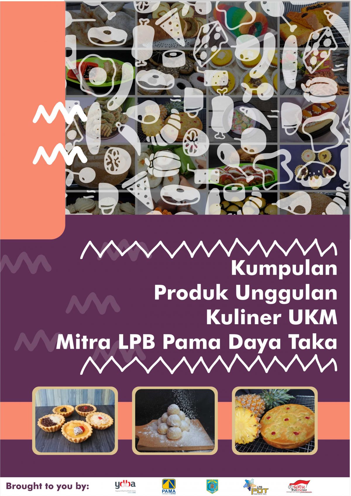 Katalog produk berisikan 25 halaman konten ini berisi informasi dari 25 UKM Makanan aktif yang ikut serta. Setiap UKM diberikan 1 halaman penuh ukuran A4 untuk ditampilkan informasi tentang Unit Usaha dan produk-produk unggulannya dengan pengumpulan data berupa informasi usaha dan produk, foto produk serta pengerjaan design layout per halaman UKM yang dikerjakan sendiri langsung oleh tim LPB Pama Daya Taka. Proses pembuatan katalog ini cukup memakan waktu mengingat pengumpulan data sendiri yang berlangsung selama hampir 2 bulan disebabkan oleh kesiapansediaan UKM yang berbeda-beda waktunya untuk survey data dan pengambilan foto. Meskipun demikian terdapat sejumlah UKM yang ternyata belum memiliki logo ataupun lable, oleh karena itu dengan adanya pengerjaan katalog produk ini juga sebagai media untuk melengkapi atribut visual unit usaha UKM mitra kami sehingga menambah citra merek dan meningkatkan nilai ekonomis dari branding baik dari usaha maupun produknya sendiri.