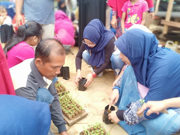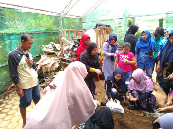 Dalam pelatihan ini tidak hanya teori saja yang disampaikan, tetapi para peserta juga diberikan materi praktek secara langsung, seperti proses penyemaian dari benih tanaman dan juga pengisisan media tanam ke dalam polybag. Dua hal ini menjadi pengetahuan dasar untuk para peserta. Untuk materi pengisian media tanam ke dalam polybag, yang digunakan adalah campuran dari tanah dan kotoran kandang ayam, dengan komposisi 2 : 1. Para peserta sangat antusias dalam melakukan praktek pengisisan media ke polybag. Di sesi ini juga para peserta sambil mendiskusikan dengan narasumber secara langsung terkait hal yang ingin ditanyakan langsung oleh peserta.