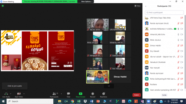 Oleh karena pentingnya untuk meningkatkan inovasi dari kemasan, dan juga sebagai tindak lanjut dari kegiatan pelatihan branding dan packaging bagi UKM Kuliner yang telah terlaksana sebelumnya, pada Tanggal 10 Mei 2021 LPB Pama Daya Taka menyelenggarakan pendampingan branding dan packaging yang diikuti oleh 10 UKM kuliner mitra binaan LPB PDT. Kegiatan ini dilaksanakan secara daring melalui Zoom dengan menghadirkan narasumber, Ryan Perdana selaku pemilik dari cashiela creative, usaha yang bergerak di bidang jasa percetakan dan desain kemasan. Meskipun pendampingan tidak bisa dilakukan secara tatap langsung, namun tidak mengurangi esensi dari pendampingan ini, karena masing – masing UKM diberikan kesempatan untuk dapat berdiskusi dengan narasumber terkait konten dan materi dari kemasan produk yang diinginkan UKM seperti bentuk kemasan, bahan kemasan, warna kemasan dan tentunya desain kemasan.