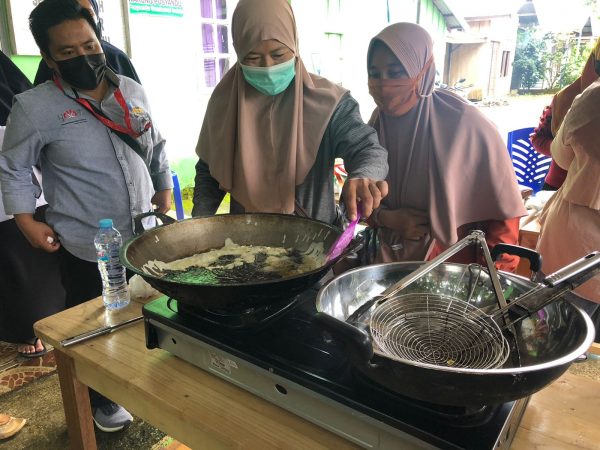 Tema yang kami angkat cukup sedarhana sharing bareng sambil praktek membuat peyek aneka toping, mereka di ajari dari memilih bahan baku, meracik sampai proses pembuatan dan teknik memasanya di ajarkan oleh bu richa perserta antusias mengikuti kelas ini terlihat dari banyak perserta banyak bertanya salah satunya bu jannah “ bu richa jadi kalo buat peyek bangusnya pake api besar dan minyaknya harus panas ya? Di jawab benar bu suapaya adonanya tidak menempel di wajan akan merusak bentuk dan makan waktu lama trus berminya”.